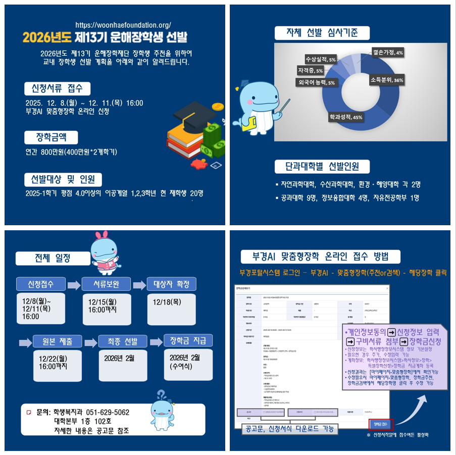 2026학년도 (재)운해장학재단 장학생 신청 안내